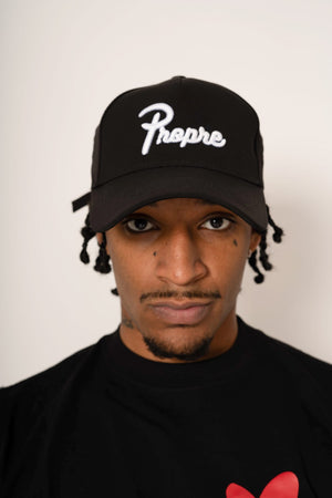 Cette casquette noire est confectionnée en toile de coton avec Propre 3D brodée à l’avant. Fermeture réglable à boucle métallique.
